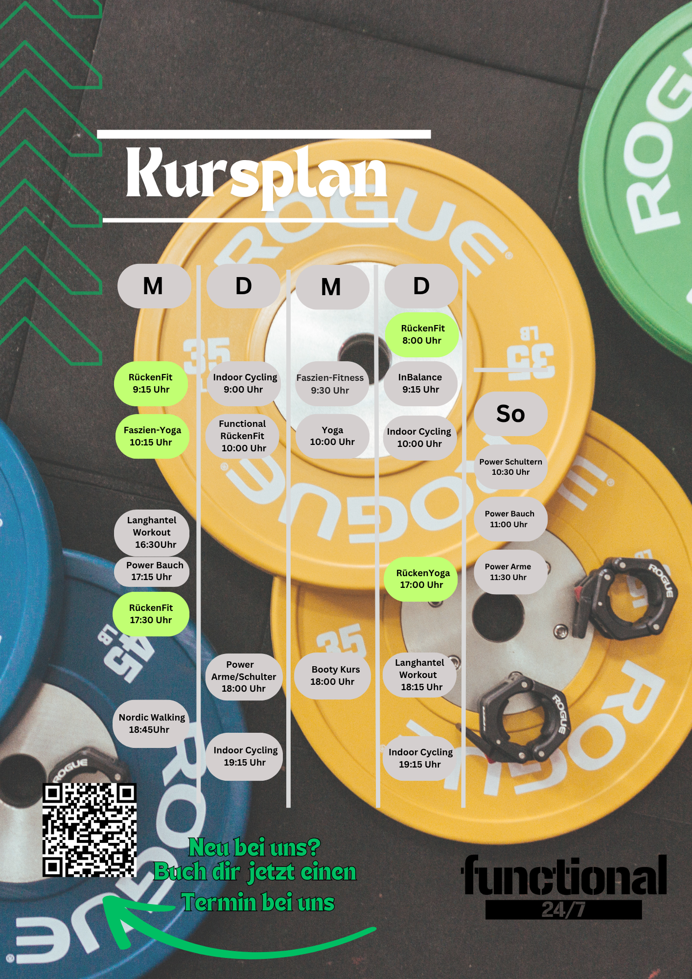 Erlebe ein umfangreiches und vielseitiges Angebot an Fitness- & Gesundheitskursen sowie Personal-Kleingruppen-Training unter hochqualifizierter Leitung. Bewegung, Spaß, Power, Teamgeist und Körpergefühl stehen dabei im Vordergrund.
